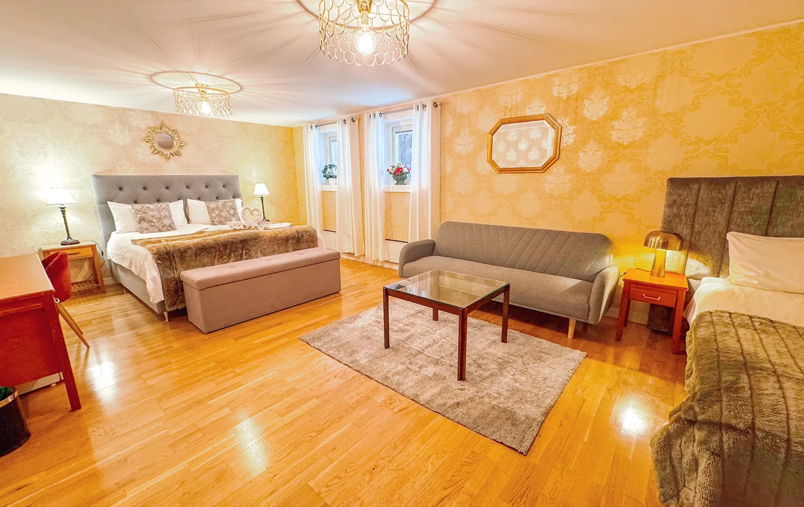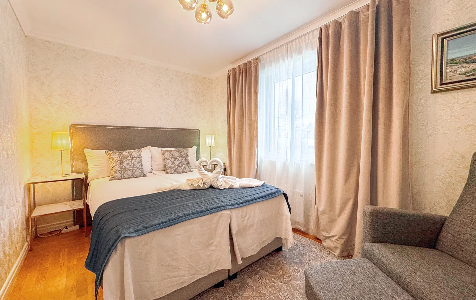 Rummen är smakfullt inredda och utrustade med allt du behöver för en behaglig vistelse, från bekväma sängar till praktiska arbetsytor.